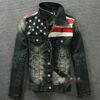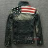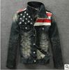 New American flag jeans jacket for men Fashion motorcycle jeans short jacket do old jeans denim coat