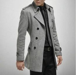 Free shipping 2014 HOT Fashion Men's Slim Stylish Trench Coat Winter Long Jacket Double Breasted Overcoat Mens Outerwear