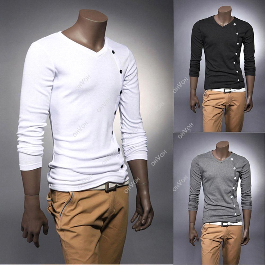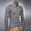 men's European style fashion long-sleeved V-neck T-shirt