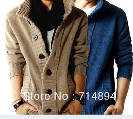 Free Shipping!fashion big lapel single-breasted men's sweater real wool cotton men's sweater men's wool cardigan sweater