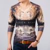 men's European style fashion long-sleeved V-neck T-shirt