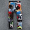 Free shipping ! New 2015 fashion mens color patchwork washed jeans male personality denim skinny pants mens casual slim jeans