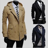 Free shipping 2014 HOT Fashion Men's Slim Stylish Trench Coat Winter Long Jacket Double Breasted Overcoat Mens Outerwear