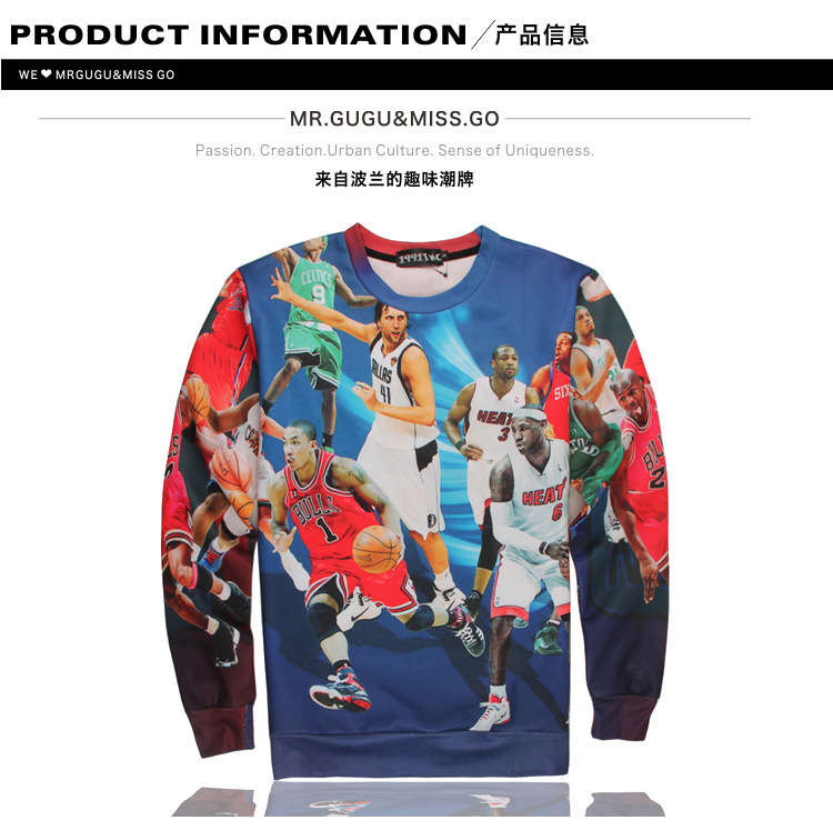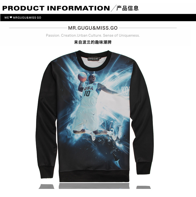 [Amy] 2014 new style fashion sweatshirt for men 3d sweatshirt long sleeve o neck Animal/ladies printed thin hoodies For Men's